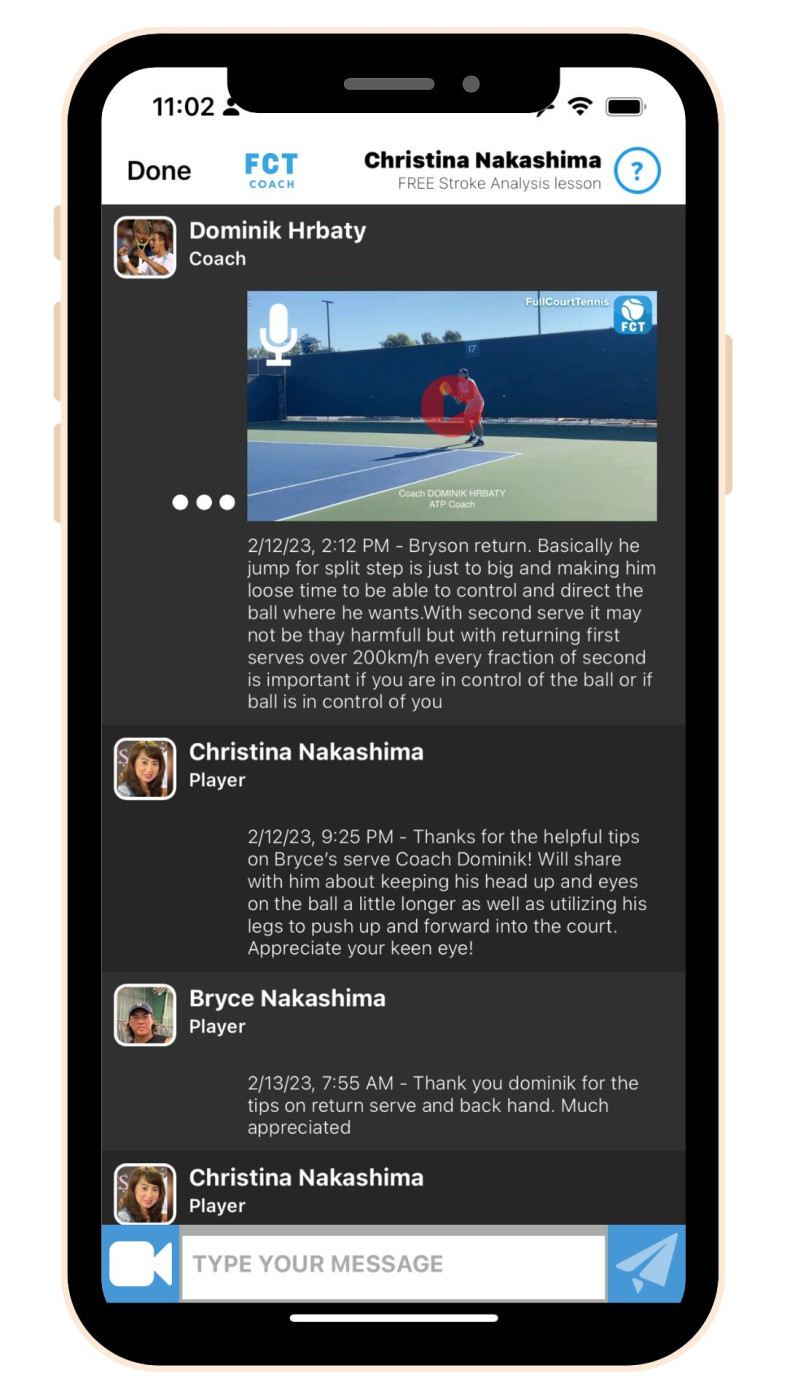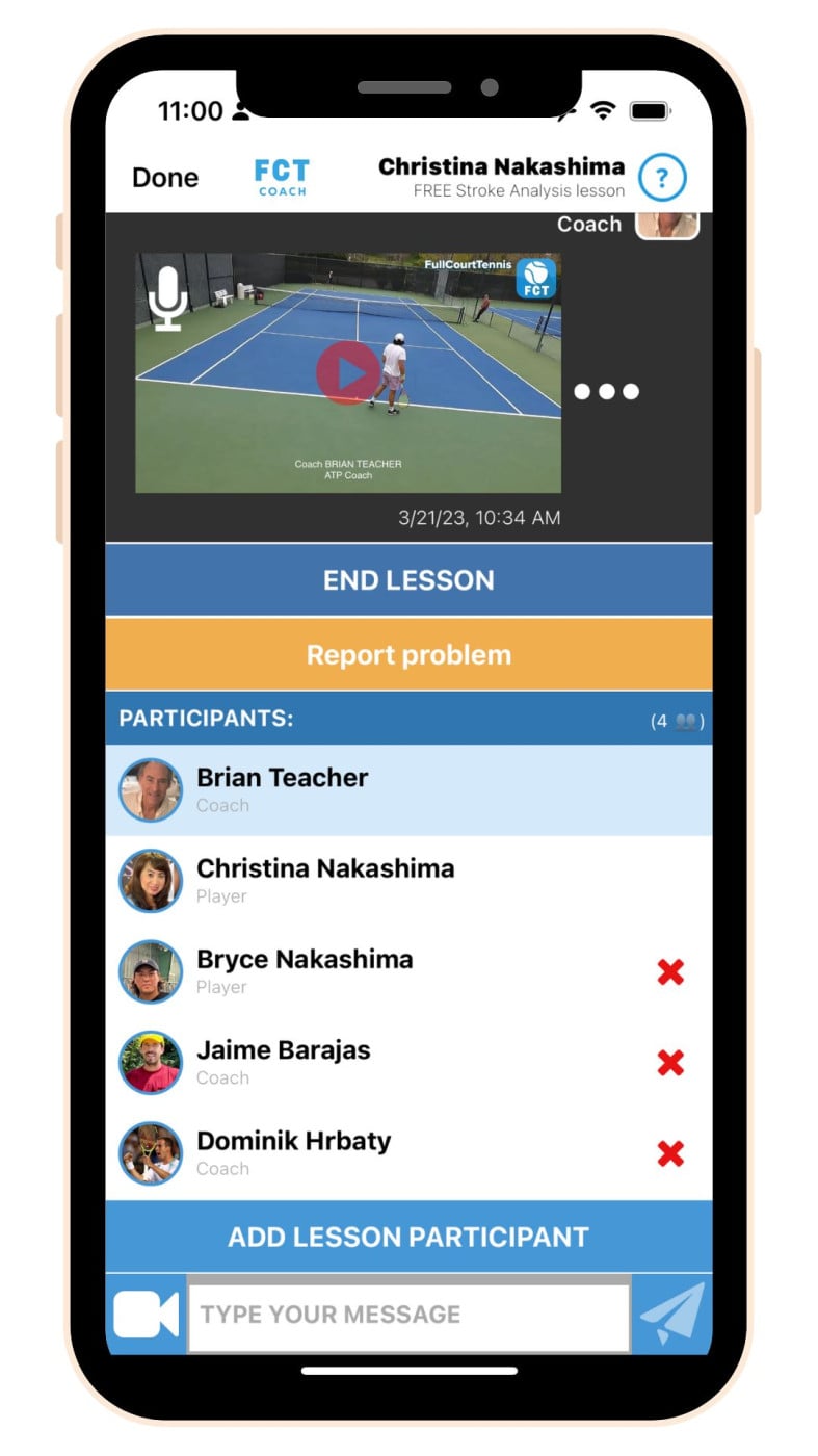 3. Increase Your Off-Court Revenue: Shift your focus from on-court revenues to a more holistic approach by enabling your students to learn quicker with video analysis all in one place with date and time stamps. Here the coach has started a Free Multiple Participant Lesson. This tracks the student's progress accurately. Invite their parents into the Lesson Space and bill them as an add on to your weekly in-person lesson.