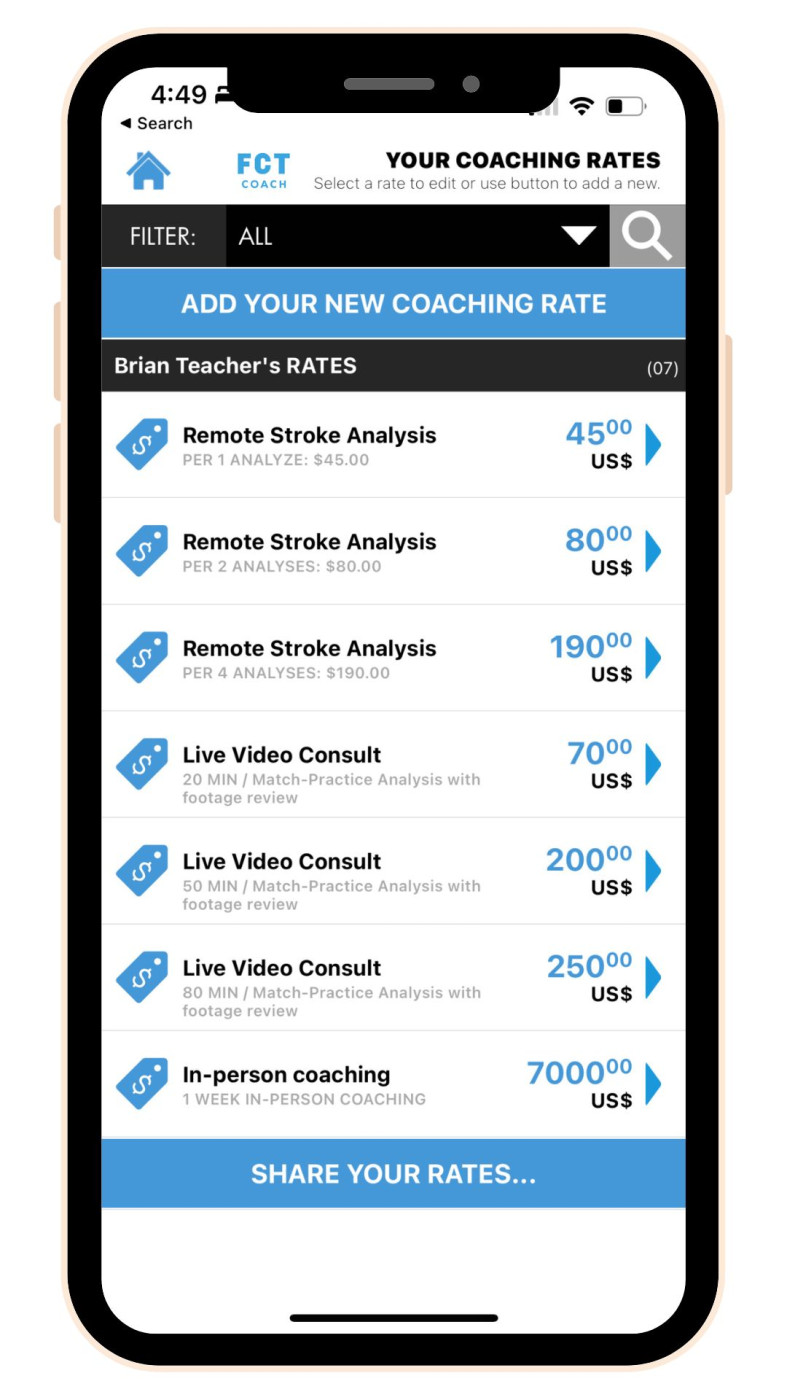 2. Increase Your Value: Explore opportunities for upselling or cross-selling to your existing students. Set your coaching rates to get hired in the FCT app. This is a reciprocal benefit to both coach and student.