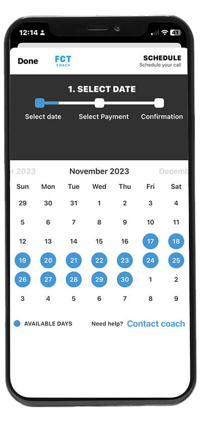 Players can look at a Coach's availability to hire for a Live Video Consult Lesson.