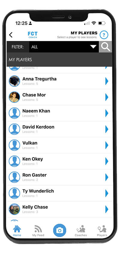 Here is the Coach's profile. Here is the various lessons that the Coach has with the Player.