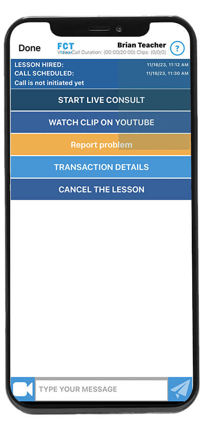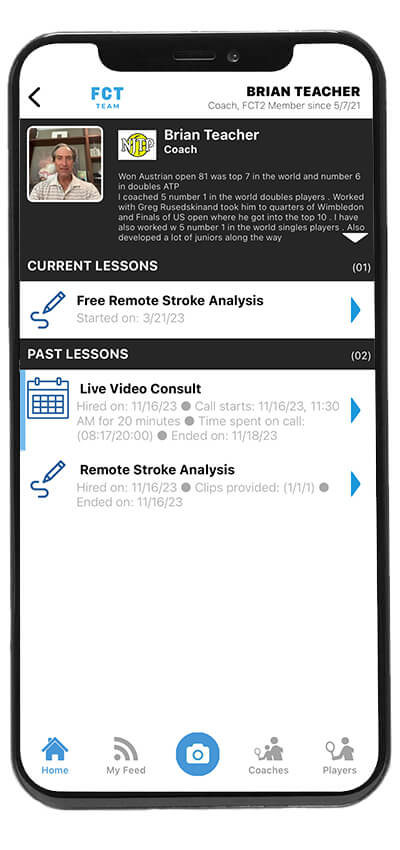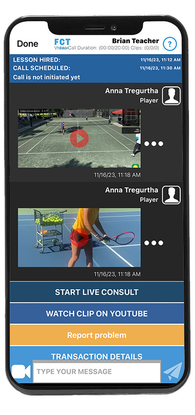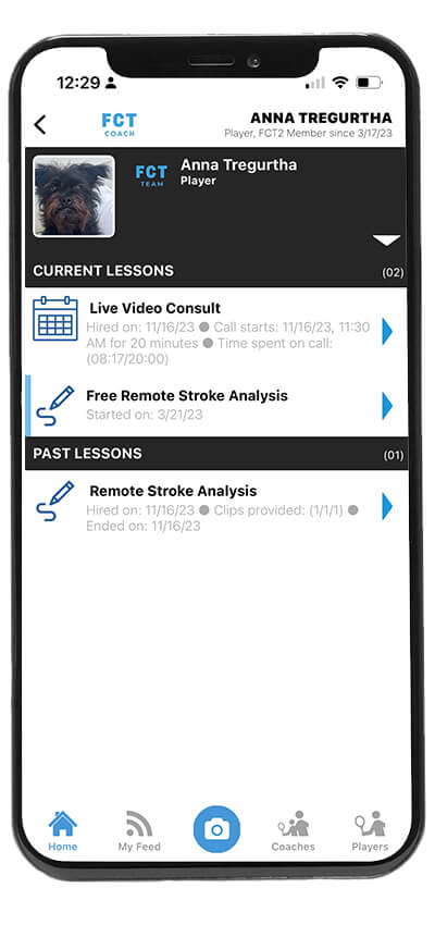 Here is the Player's profile. Here is the various lessons that the Coach has with the Player. You can see under Current Lessons the Live Video Consult Lesson.