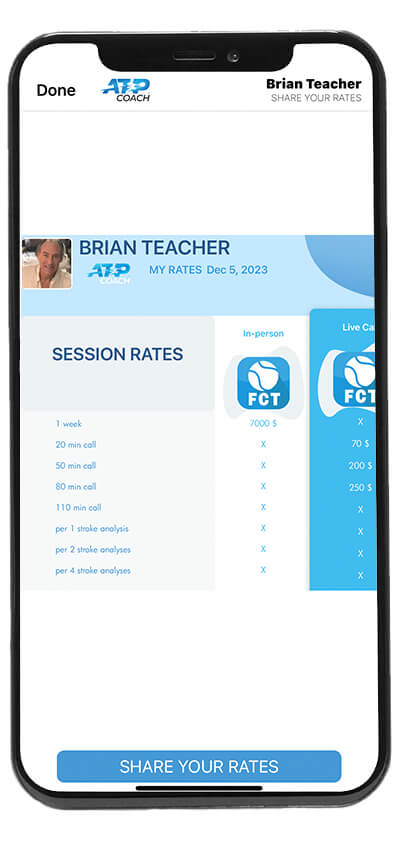 In conclusion, a coach can share their rates via email and social media. In addition, a coach can allow any interested Player to message them in FCT to inquire about the details of an in-person weekly hire. Along with this new In-Person Weekly Coaching feature FCT also has a Hire for Stroke Analysis Lesson and a Live Video Consult Lesson (where coach and player can review any length video). FCT also has an exciting New Feature coming out shortly: Subscriptions. With Subscriptions, Coaches can Post their Premium Content and set their own pricing. Inside Subscriptions coaches will be able to build their community with comments, replies, and notifications. FCT's goal is to empower coaches with the necessary tools to scale their business beyond the limitations of hourly rates, enabling significant growth.